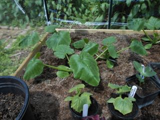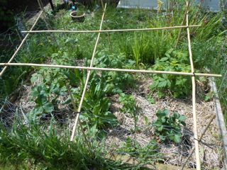 Not very permaculture this, but the courgettes are loving the micro-climate in their little poly-tunnel. I bought some cucumbers at the church plant sale yesterday. I think I’ll plant them here too.