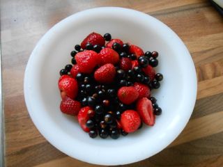 This is yesterday’s dessert – strawberries and blackcurrants, freshly harvested and delicious. There would have been more if less of the crop had been lost in the quality assurance process. Well, I had to taste a big enough sample to be sure I wasn’t serving up rubbish, didn’t I?